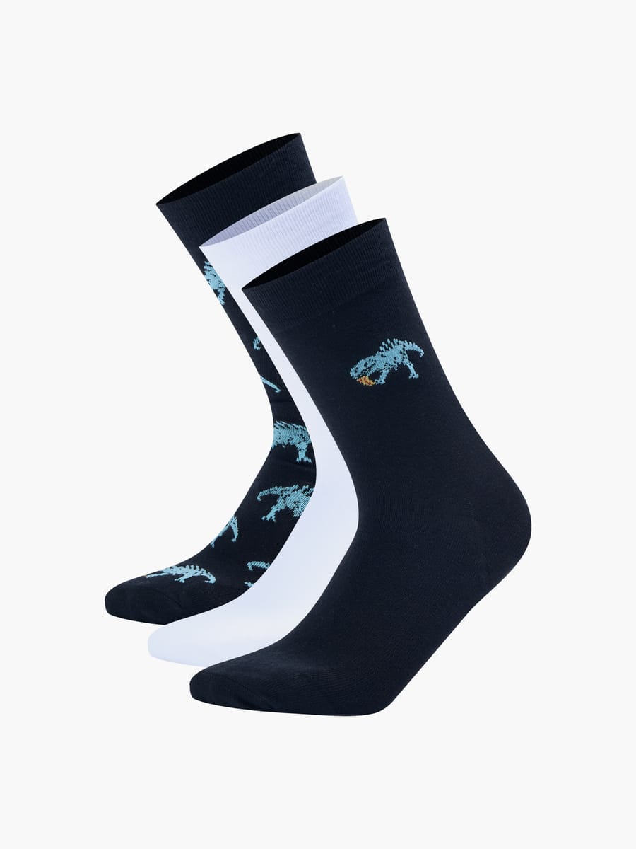 Набор из 3 пар стильных мужских носков с забавным принтом динозавров — это уникальное сочетание комфорта и весёлого дизайна для тех, кто не боится выделяться из толпы.