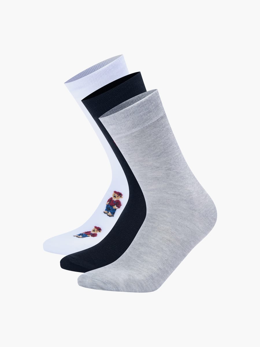 Набор из 3 пар очаровательных мужских носков с милым принтом плюшевого медведя — идеальное сочетание комфорта и душевной теплоты для тех, кто ценит нежные детали в гардеробе.