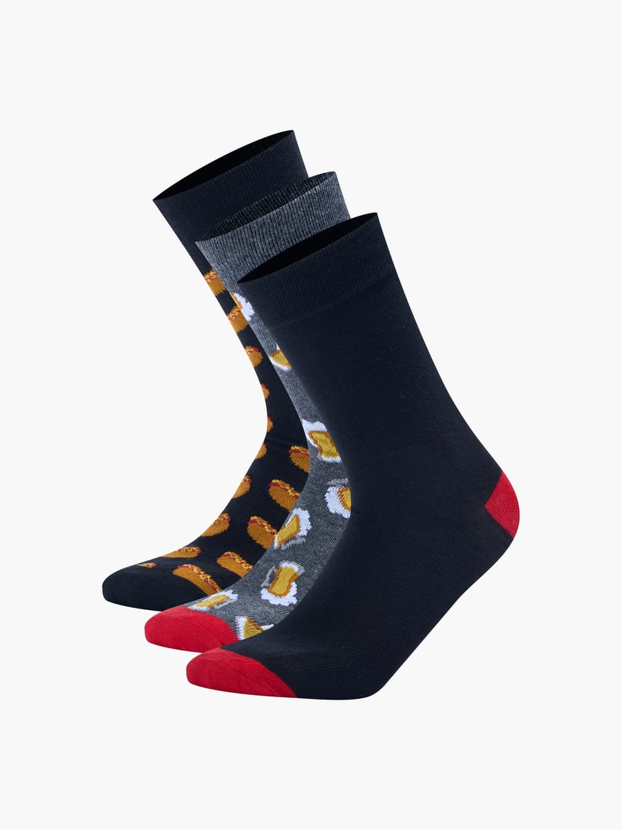 Оригинальные носки от бренда ТВОЕ — это идеальное сочетание комфорта и забавного дизайна. Набор из 3 пар средних носков с аппетитным принтом напитка и гамбургеров станет ярким акцентом в гардеробе современного мужчины.