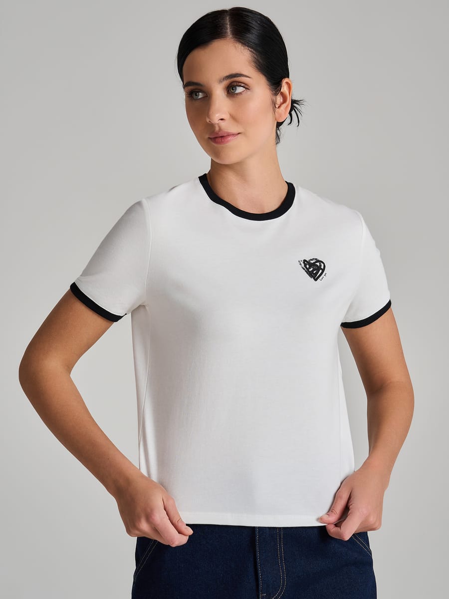 Изящная футболка в белом цвете от ТВОЕ — идеальное сочетание лаконичности и романтического настроения. Приталенный крой подчёркивает силуэт, а контрастные чёрные элементы и принт с сердцами создают выразительный молодёжный образ, который не выйдет из моды в сезоне 2025–2026. Чёрная надпись Love you — лаконичный, но выразительный акцент, а принт с сердцами — романтичный элемент, добавляющий модели индивидуальность.