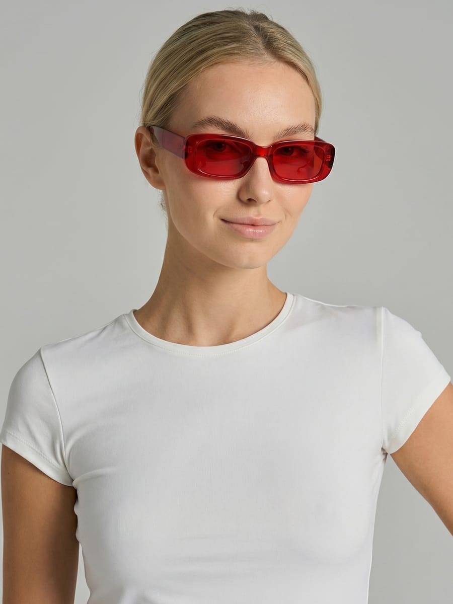 Солнцезащитные очки от бренда ТВОЕ — смелое модное заявление 2026 года, которое добавит яркости любому образу и подчеркнёт вашу индивидуальность. Прямоугольная форма оправы задаёт чёткие, графичные линии — они структурируют силуэт, придают облику современную динамику и при этом деликатно обрамляют лицо, подчёркивая его черты. Красная пластиковая оправа создаёт особый эффект: она выглядит одновременно игриво и утончённо, добавляя образу лёгкости и летнего настроения. В сочетании с красными линзами аксессуар превращается в настоящий имиджевый элемент — мягкий монохромный образ притягивает взгляды, но не кажется вычурным. Оттенок работаетф деликатно: он смягчает резкие линии прямоугольной формы, создавая гармоничный баланс между строгостью геометрии и нежностью цвета.