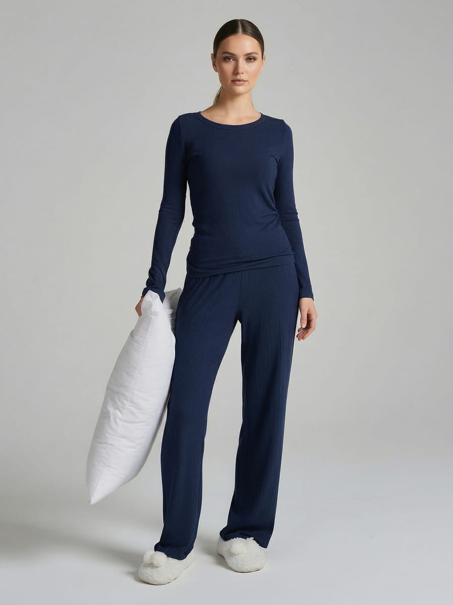 Представляем стильную пижаму от бренда ТВОЕ, идеально подходящую как для женщин, так и для подростков. Этот домашний костюм выполнен из качественного рубчикового материала, включающего полиэстер и вискозу, что обеспечивает мягкость и приятные тактильные ощущения. Комплект состоит из свободного лонгслива с длинным рукавом и широких прямых брюк на резинке с завязками. Набор представлен в однотонном стиле, что придает ей элегантный и современный вид. Отсутствие карманов добавляет минималистичности и утонченности.