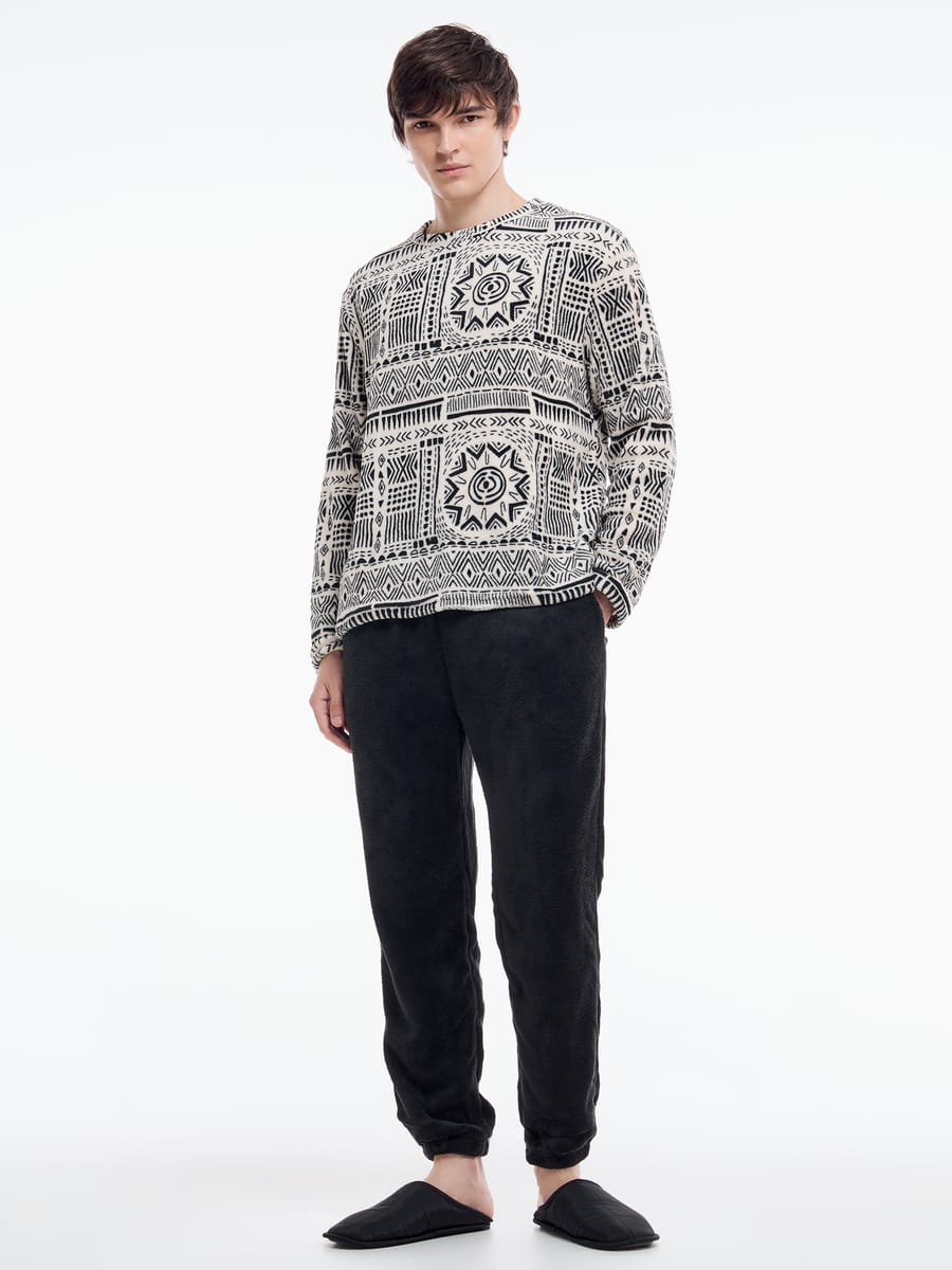 Плюшевая пижама с орнаментом и брюками