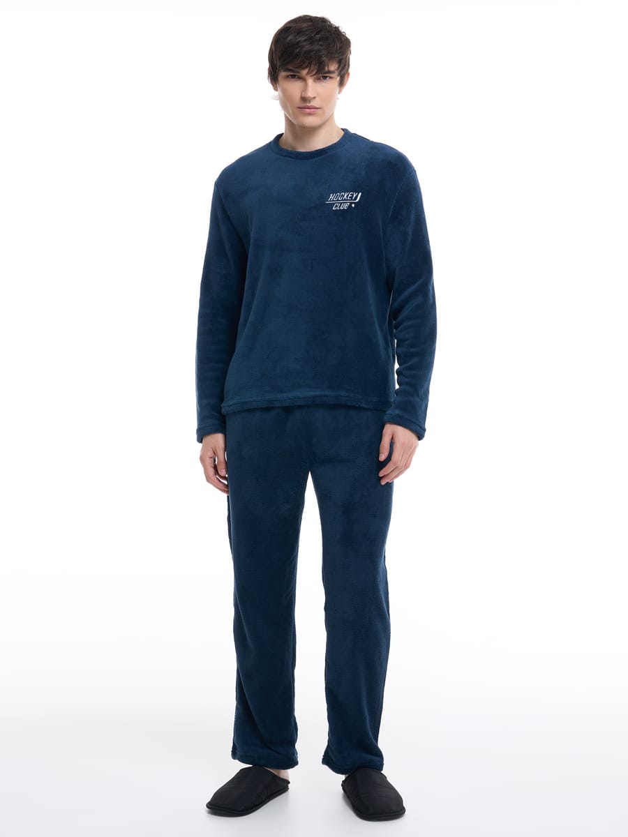 Плюшевая пижама с надписью Hockey club и брюками
