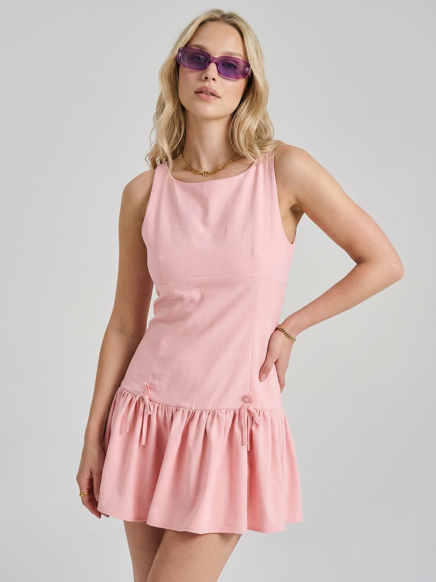 Стильное мини‑платье от ТВОЕ 2026 года — модный тренд для лета, праздников и вечеринок. Приталенный верх и широкая юбка в складку создают женственный силуэт, а кокетливые бантики на юбке и широкие бретели добавляют игривости. Лёгкое, элегантное и молодёжное, оно подойдёт для повседневных и вечерних образов. Идеальный выбор для девушек и женщин — добавьте это популярное платье в свой гардероб и будьте в центре внимания!
