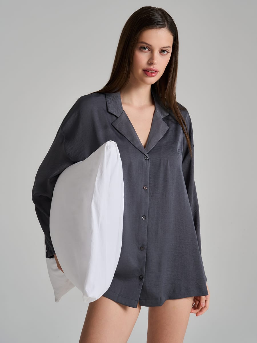 Женское домашнее платье‑рубашка от бренда ТВОЕ — идеальное сочетание уюта, комфорта и изящного стиля для повседневных домашних моментов. Модель выполнена в лаконичном сером цвете, который привносит в домашний гардероб нотку яркости и настроения. Короткий силуэт в формате мини и свободный крой обеспечивают абсолютную свободу движений и максимальный комфорт — в таком платье приятно заниматься домашними делами, отдыхать или готовиться ко сну.