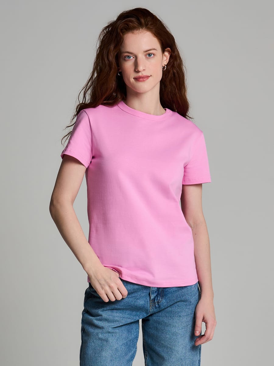 Футболка из базовой коллекции выполнена из натурального 100% хлопка. Модель прямого кроя отличается легкостью и дышащими свойствами, что делает ее идеальным выбором для повседневного гардероба. Однотонная трикотажная модель с круглой горловиной прекрасно подходит для летнего сезона, благодаря своей легкости и натуральному материалу.