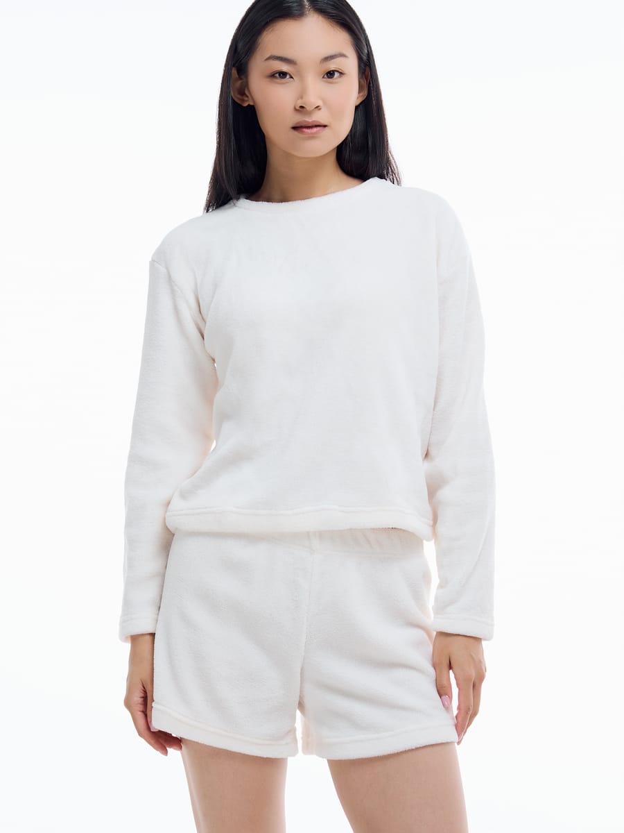 Теплая пижама от бренда ТВОЕ — это воплощение комфорта и нежности в каждой детали. Идеальный выбор для тех, кто ценит мягкость и уют в домашней одежде. Комплект состоит из кофты с длинным рукавом и шорт на мягкой резинке. Нежная плюшевая текстура придает пижаме максимальный комфорт.