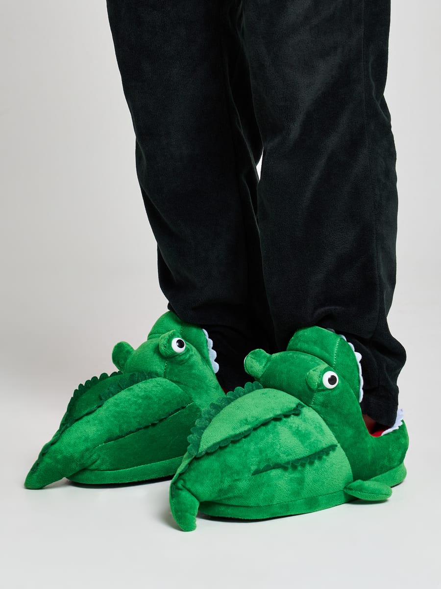 Забавные тапочки в виде плюшевых крокодилов станут ярким акцентом в домашней обстановке. Насыщенный зеленый цвет и объемная форма создают неповторимый образ, который добавит веселья в повседневную жизнь.