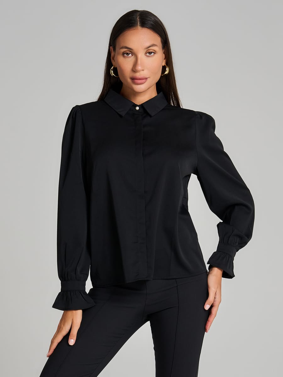 Элегантная женская рубашка от бренда ТВОЕ — воплощение стиля и комфорта для особых случаев и повседневной носки. Изысканная рубашка выполнена из высококачественного искусственного шёлка, который создаёт благородный блеск и приятные тактильные ощущения. Модель 2026 года сочетает в себе классический крой и современные детали: застежка супатная с элегантными пуговицами; отложной воротник добавляет образу утонченностиж длинные рукава с оригинальными манжетами на резинке, украшенными рюшами.