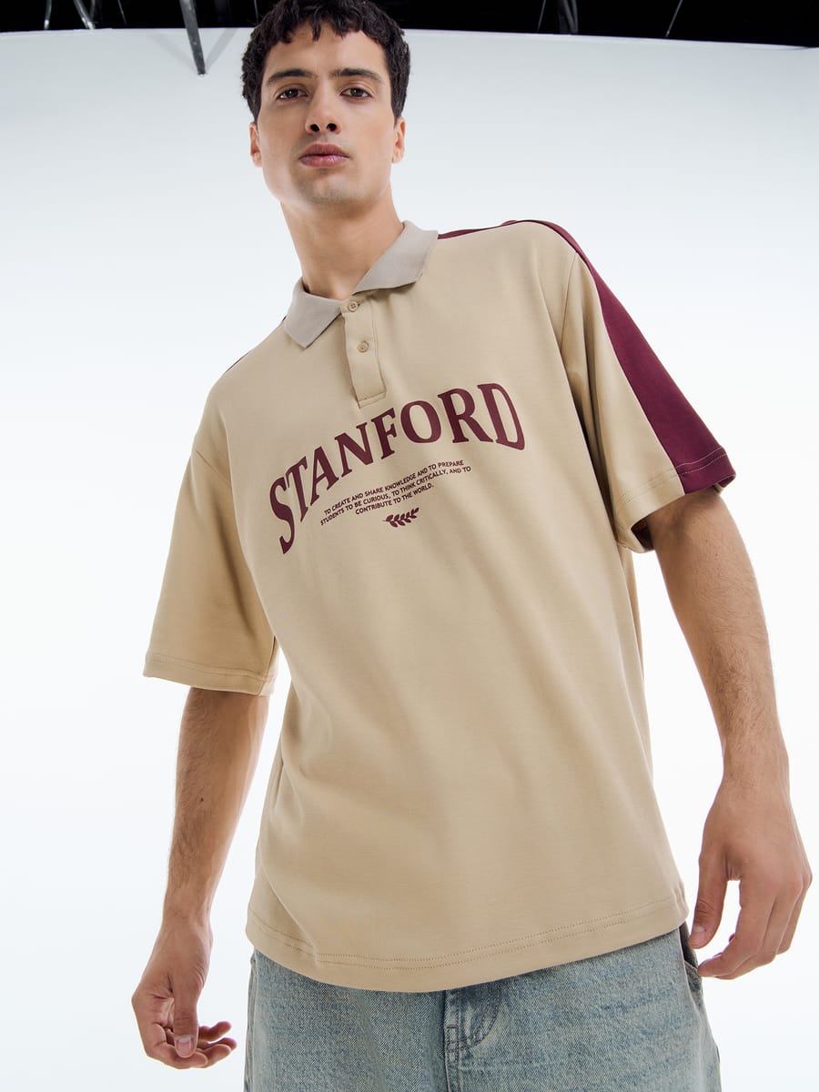 Элегантность и комфорт воплотились в этой модели поло от бренда ТВОЕ. Классический бежевый цвет гармонично дополнен стильными бордовыми акцентами, что делает образ запоминающимся и индивидуальным. Отложной воротник с пуговицами создает элегантный силуэт. Бордовые лампасы на рукавах добавляют спортивный шик, а надпись Stanford подчеркивает статусность.