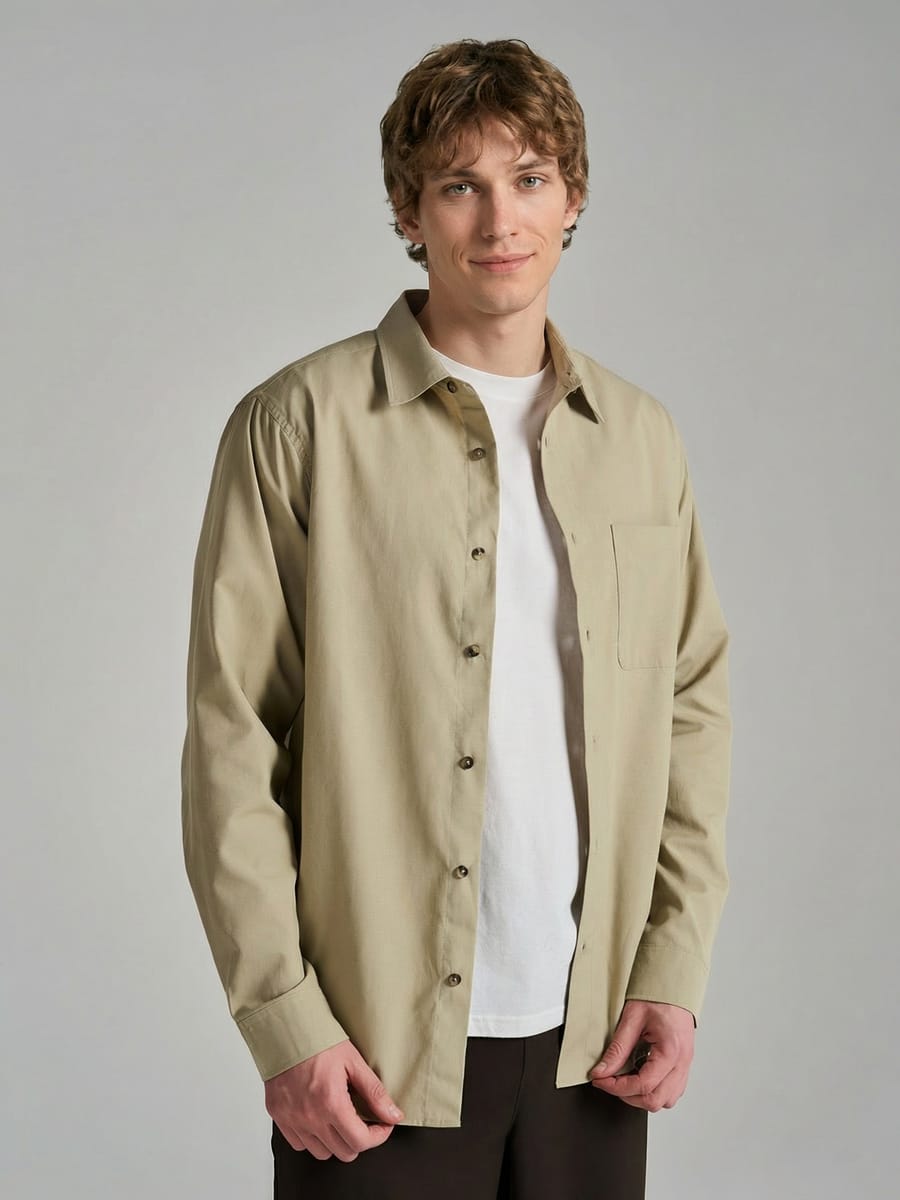 Мужская рубашка от бренда ТВОЕ — стильный элемент повседневного гардероба, который подчеркнёт современный образ и обеспечит комфорт в тёплое время года. Бежевая расцветка смотрится сдержанно и универсально, легко сочетаясь как с классическими брюками, так и с джинсами или шортами. Модель прямого кроя подойдёт и подросткам, и взрослым мужчинам: лаконичный дизайн делает её уместной в самых разных ситуациях. Отложной воротник и кокетка добавляют рубашке элегантности, не перегружая силуэт, а накладной карман на груди выполняет практическую функцию и одновременно служит выразительной деталью.