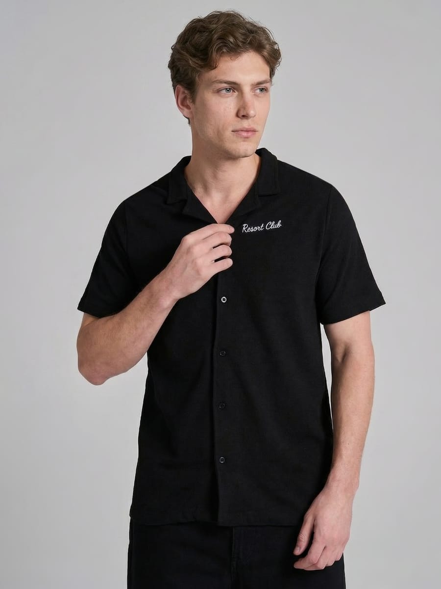 Мужская рубашка от бренда ТВОЕ — стильное решение для летнего сезона 2026 года. Глубокий чёрный цвет придаёт модели лаконичную выразительность, а изящная вышивка с надписью Resort Club на груди добавляет индивидуальности и лёгкого курортного настроения. Модель выполнена в прямом крое, который обеспечивает комфортную посадку по фигуре и не сковывает движений. Короткий рукав и отложной воротник подчёркивают летний характер сорочки, делая её идеальной для тёплых дней.