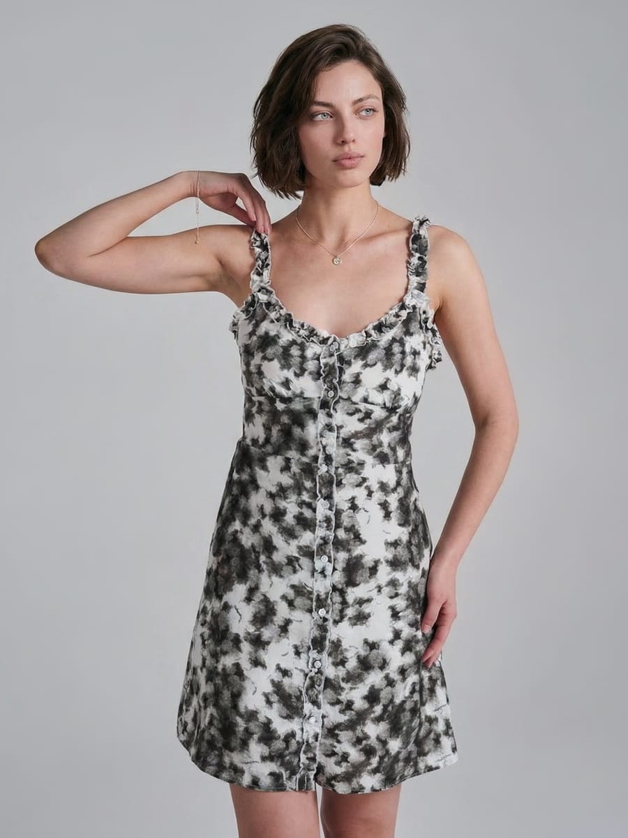 Женский сарафан от бренда ТВОЕ 2026 года — воплощение лёгкости и элегантности для весенне‑летнего сезона. Короткая модель мини‑длины идеально подойдёт для прогулок, отдыха на пляже и повседневных городских образов, добавляя в них нотку утончённого стиля. Приталенный силуэт деликатно подчёркивает фигуру, создавая женственный и гармоничный силуэт. Широкие бретели с изящными рюшами не только обеспечивают комфорт и надёжную посадку, но и добавляют дизайну романтичный акцент. Декоративные рюши, протянувшиеся вдоль всей застёжки на пуговицах, придают платью особую выразительность — каждая деталь работает на создание лёгкого, игривого настроения.