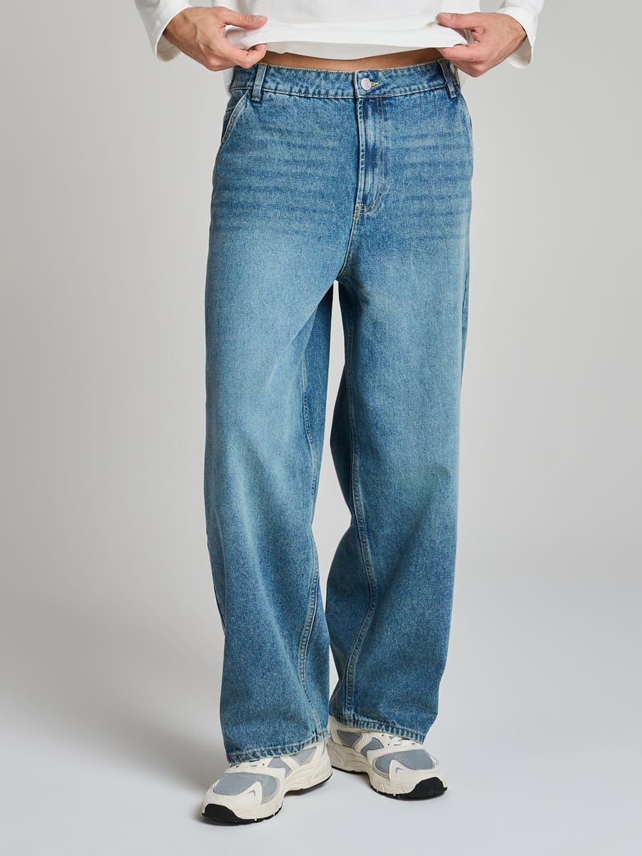 Широкие джинсы багги с вареным эффектом