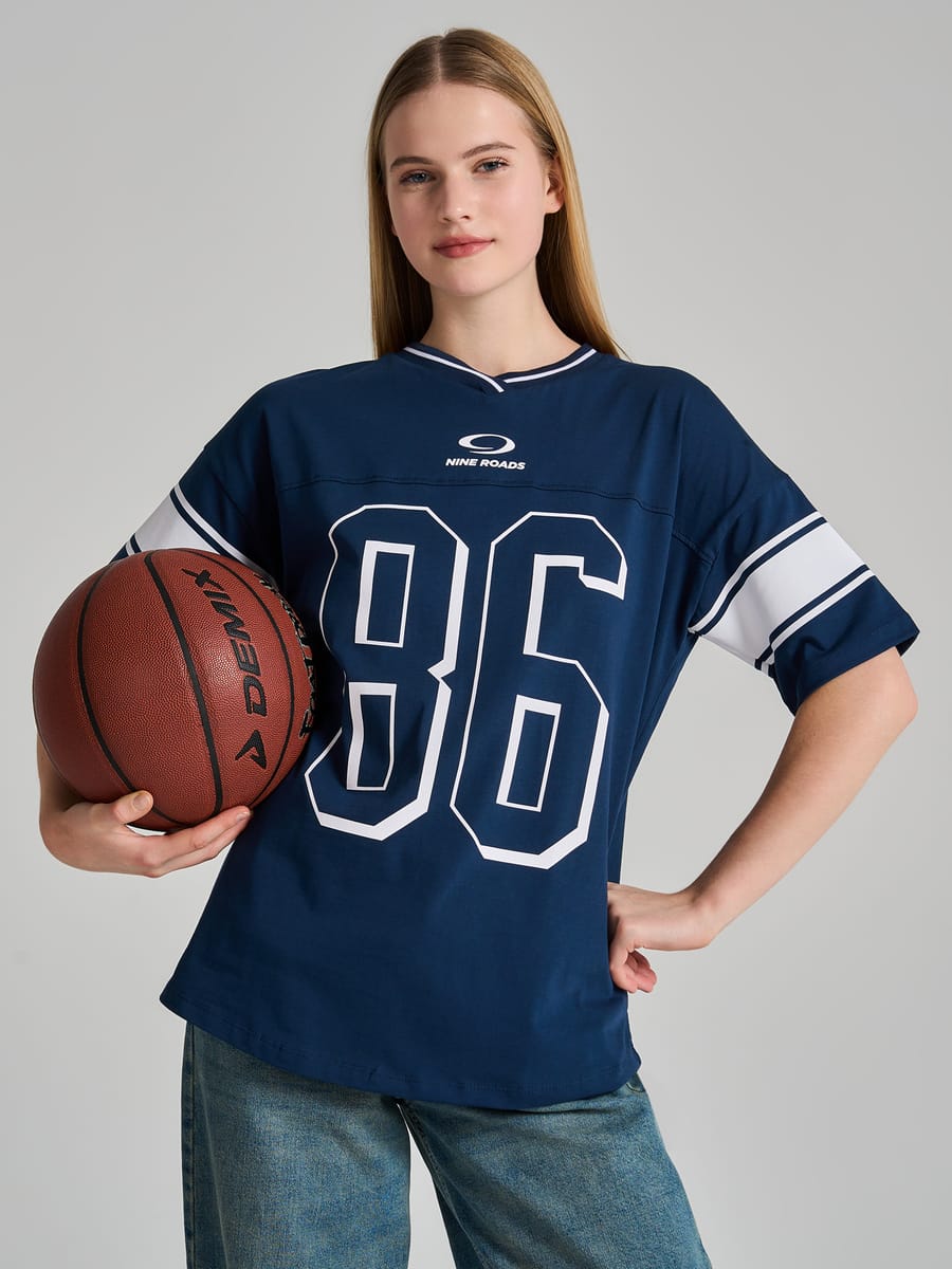 Женская футболка от бренда ТВОЕ — это воплощение комфортного стиля, где практичность гармонично сочетается с модными акцентами 2025 года. Модель в тёмно-синем цвете с деликатной гладкой фактурой притягивает взгляд и легко вписывается в повседневные образы, сохраняя при этом дух эстетики Y2K. версайз крой придаёт модели расслабленную непринуждённость — она не сковывает движений, позволяя свободно заниматься бегом, йогой или просто наслаждаться неспешными прогулками. Особенность дизайна — V образный трикотажный вырез, который деликатно подчёркивает линию шеи и добавляет силуэту изящества. Короткий рукав обеспечивает комфорт в демисезон, а ненавязчивая надпись «86» становится тонким штрихом, придающим вещи индивидуальность.