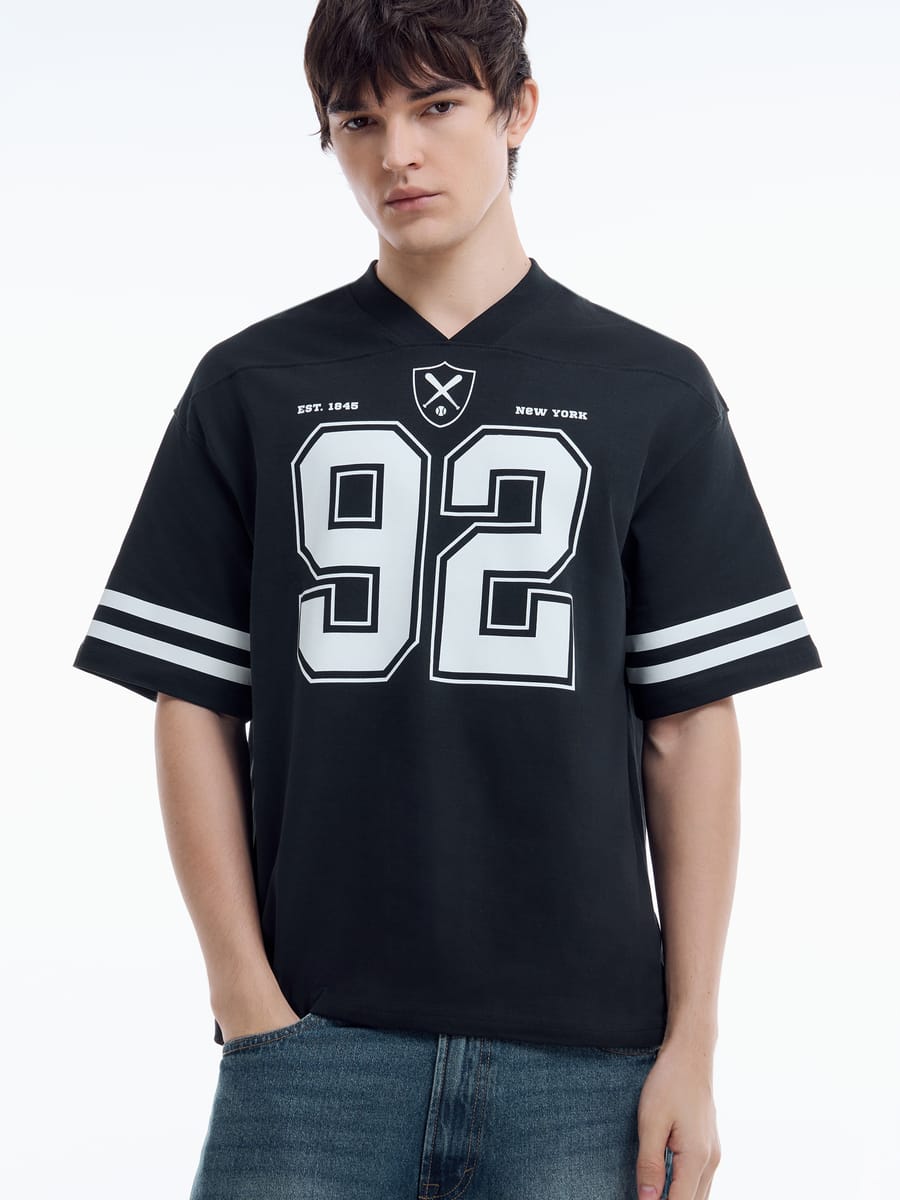 Стильная мужская футболка от бренда ТВОЕ – идеальное сочетание комфорта и городского стиля! Премиальное качество изделия обеспечивается использованием 100% натурального хлопка, который гарантирует комфорт при любых активностях. Городской стиль с элементами спортивного дизайна делает эту модель актуальной для создания разнообразных образов. Сочетание надписи New York и классических полосок на рукавах придает футболке особый шарм и узнаваемость.