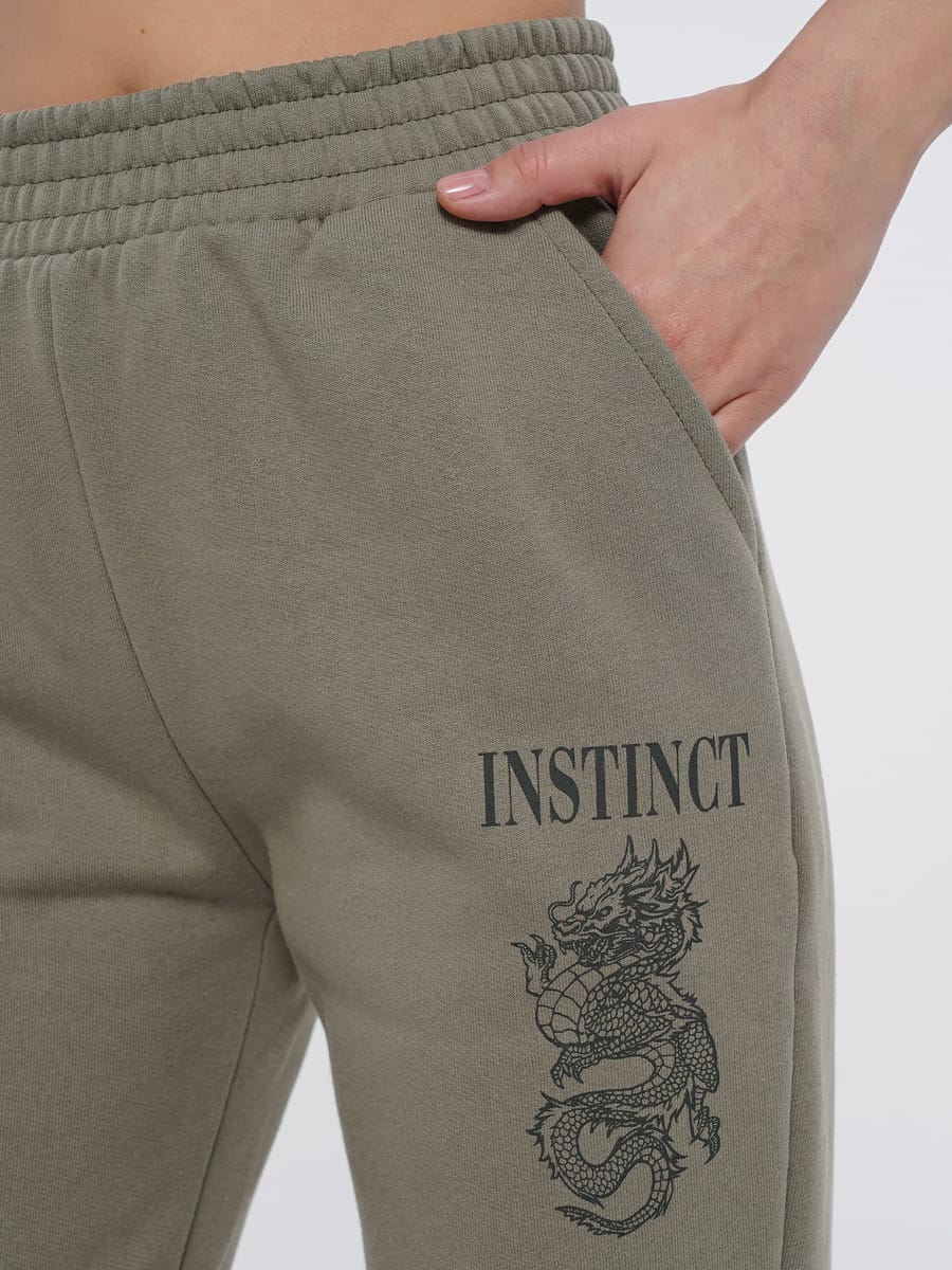 Утепленные брюки с принтом драконы