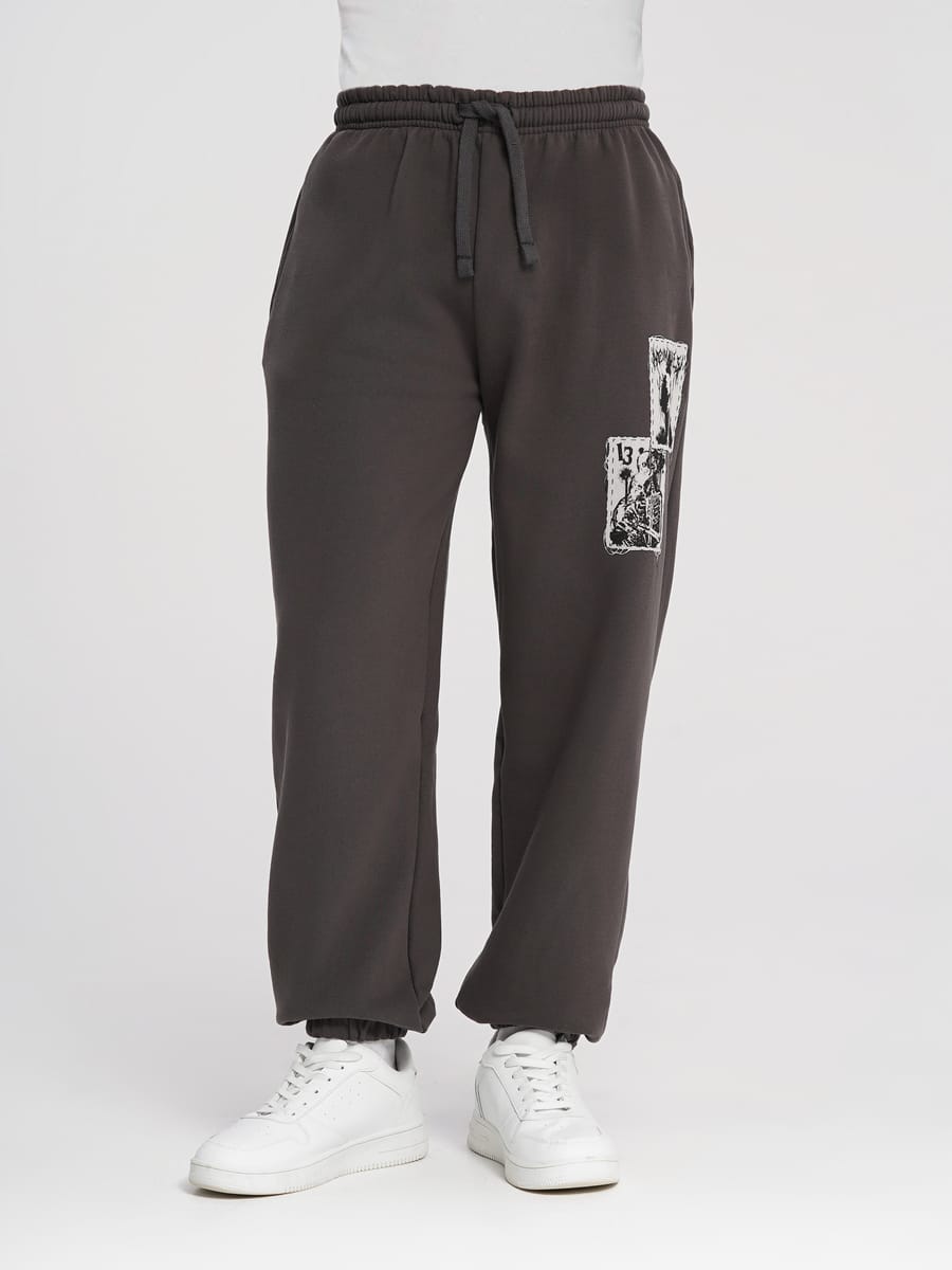 Утепленные штаны оверсайз с принтом