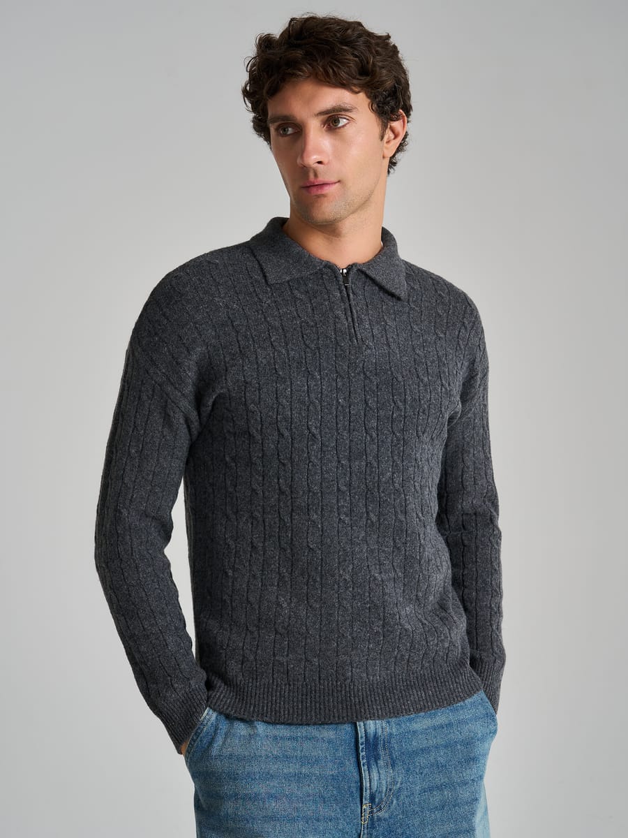 Свитер-поло вязаный с полузамком молния