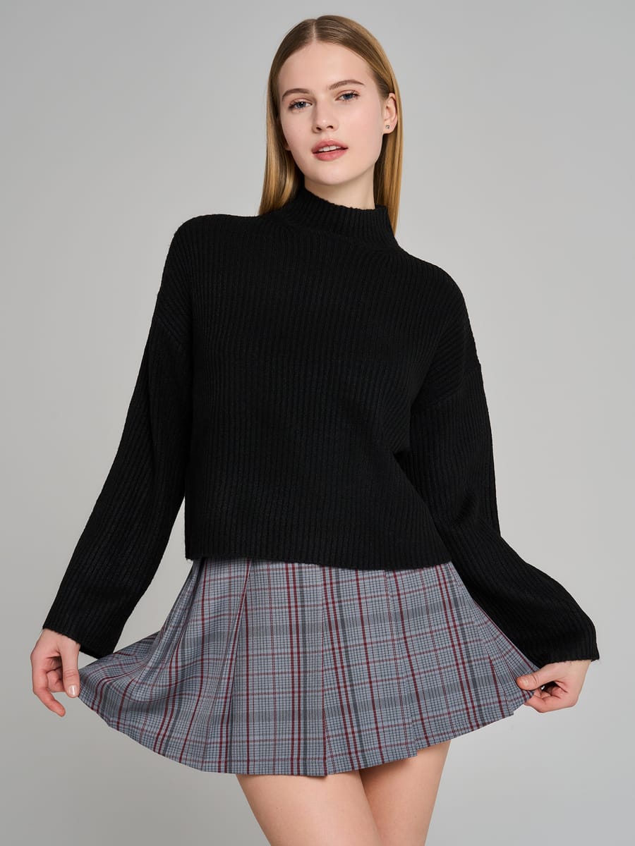 Изысканный женский свитер в классическом черном цвете от бренда ТВОЕ — воплощение комфорта и стиля в современном прочтении. Вязаная модель свободного кроя создает расслабленный, но элегантный силуэт, идеально отвечающий трендам сезона 2026 года. Особая конструкция с широкими длинными рукавами и спущенной линией плеч обеспечивает непревзойденный комфорт при носке, позволяя чувствовать себя свободно и уверенно в любой ситуации. Высокий ворот-стойка не только добавляет модели характера, но и надежно защищает от холода в прохладные дни.