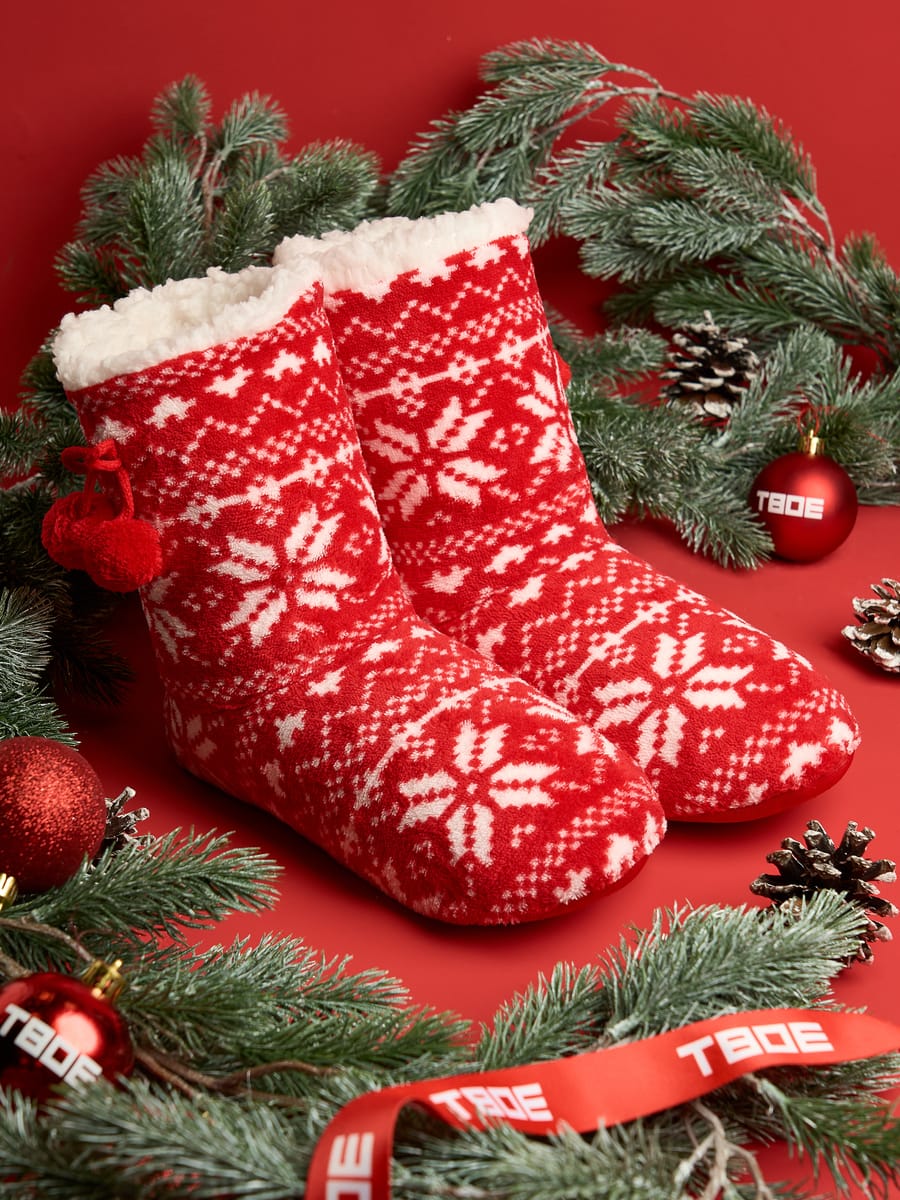 Плюшевые домашние сапожки чуни с орнаментом снежинок