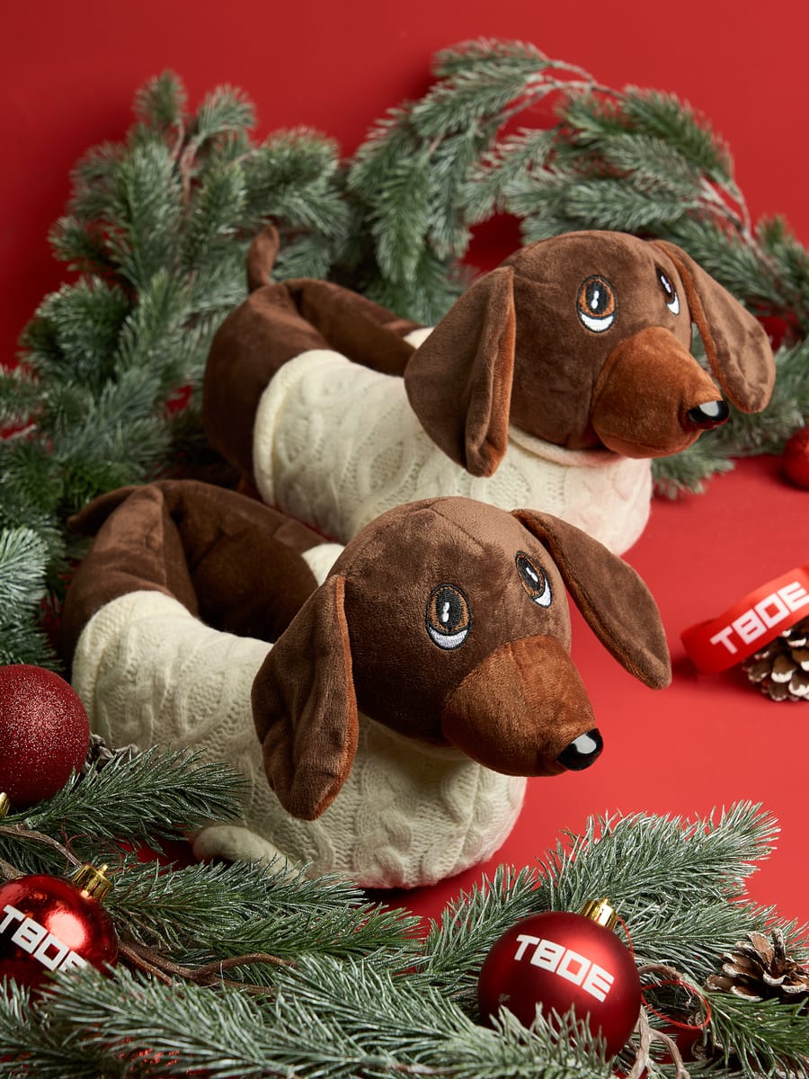 Милые тапочки в виде плюшевых такс покорят сердца всех любителей домашних животных. Объемная форма, коричневая расцветка и выразительные мордочки создают неповторимый образ, который добавит веселья в повседневную жизнь.