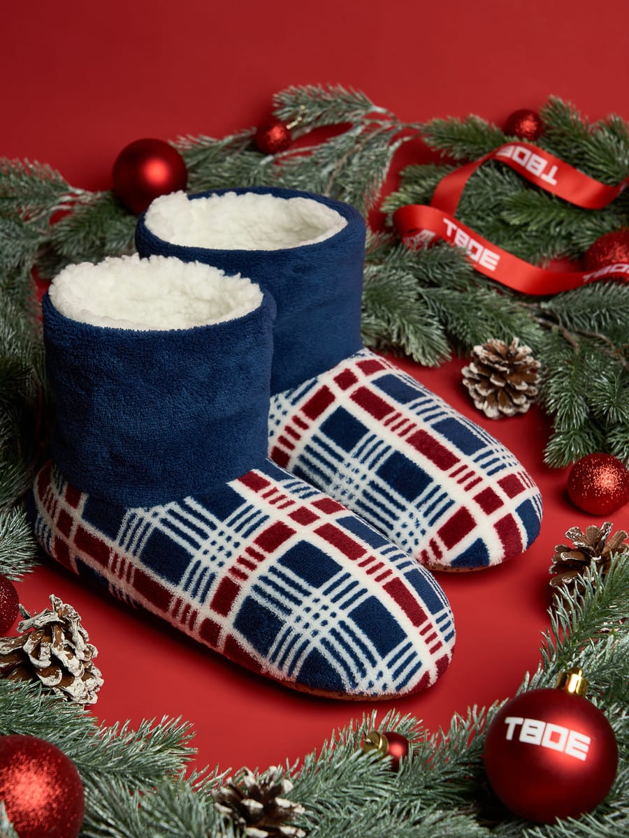 Плюшевые тапки чуни в клетку