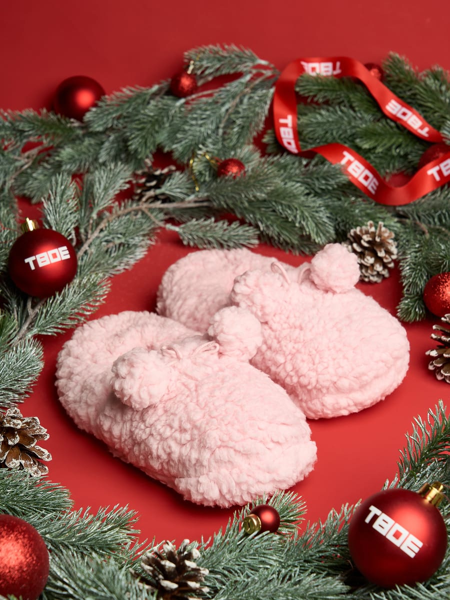 Махровые тапочки с помпонами