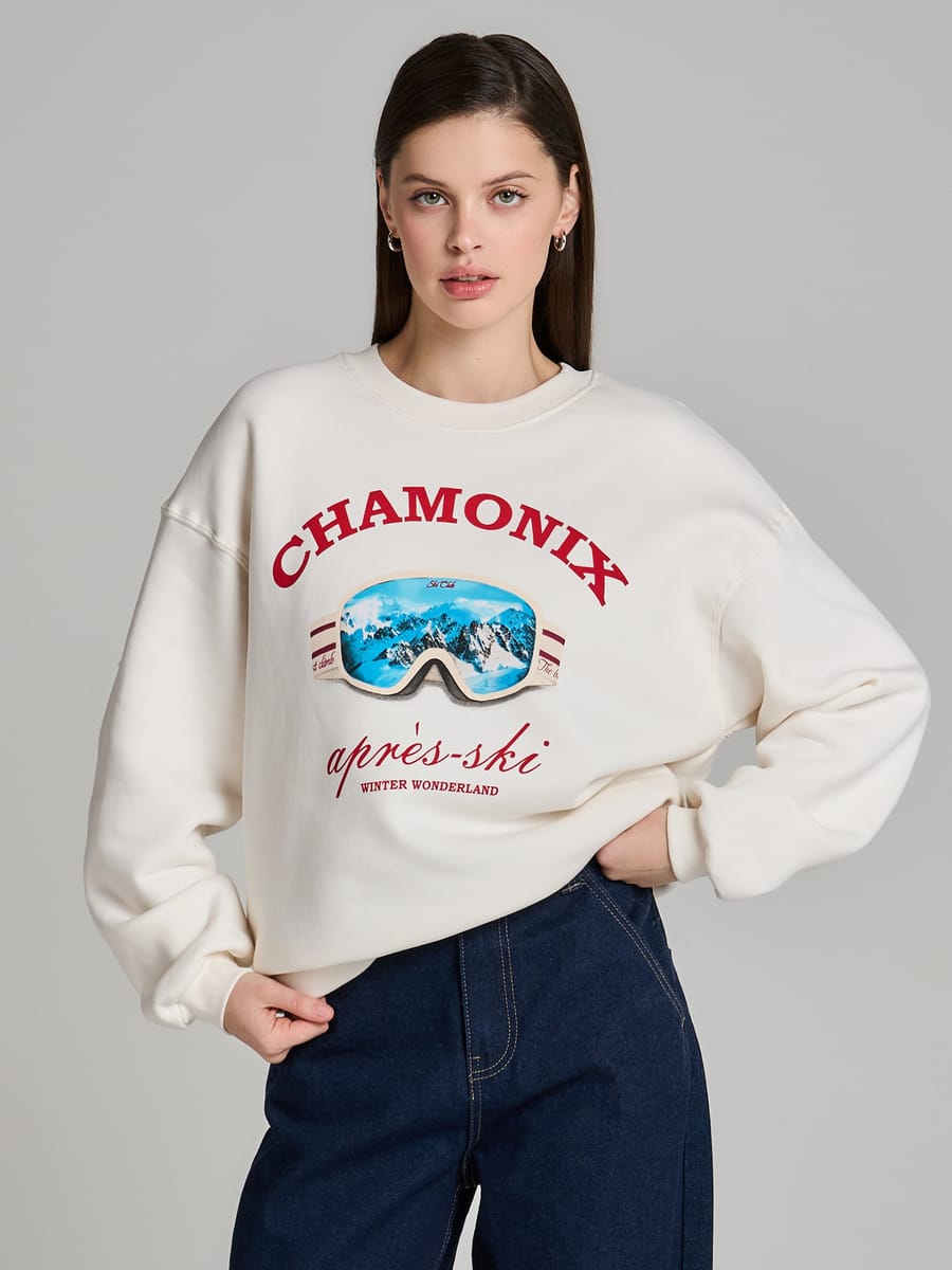 Встречайте новинку 2025 года — женский свитшот от ТВОЕ, который объединил в себе комфорт, тепло и трендовый дизайн. Модель в молочном цвете станет ярким акцентом в молодёжном гардеробе и позволит выделиться из толпы. На переднем экране расположени эффектный принт с изображением горнолыжной маски и стильная надпись Chamonix, отсылающая к культовому горнолыжному курорту