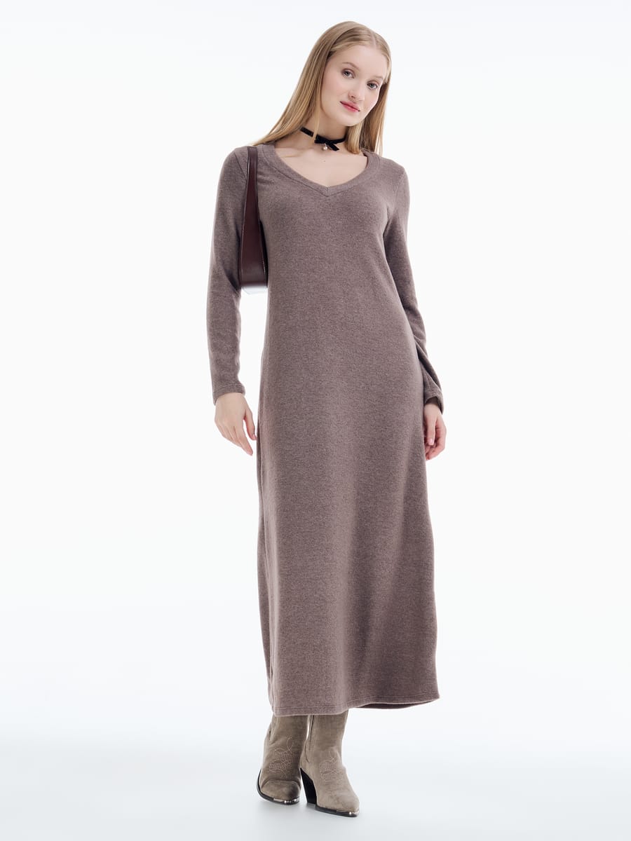 Трикотажное платье миди с длинным рукавом