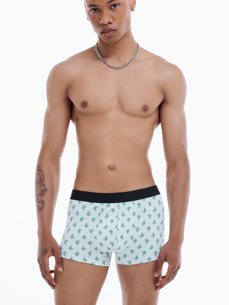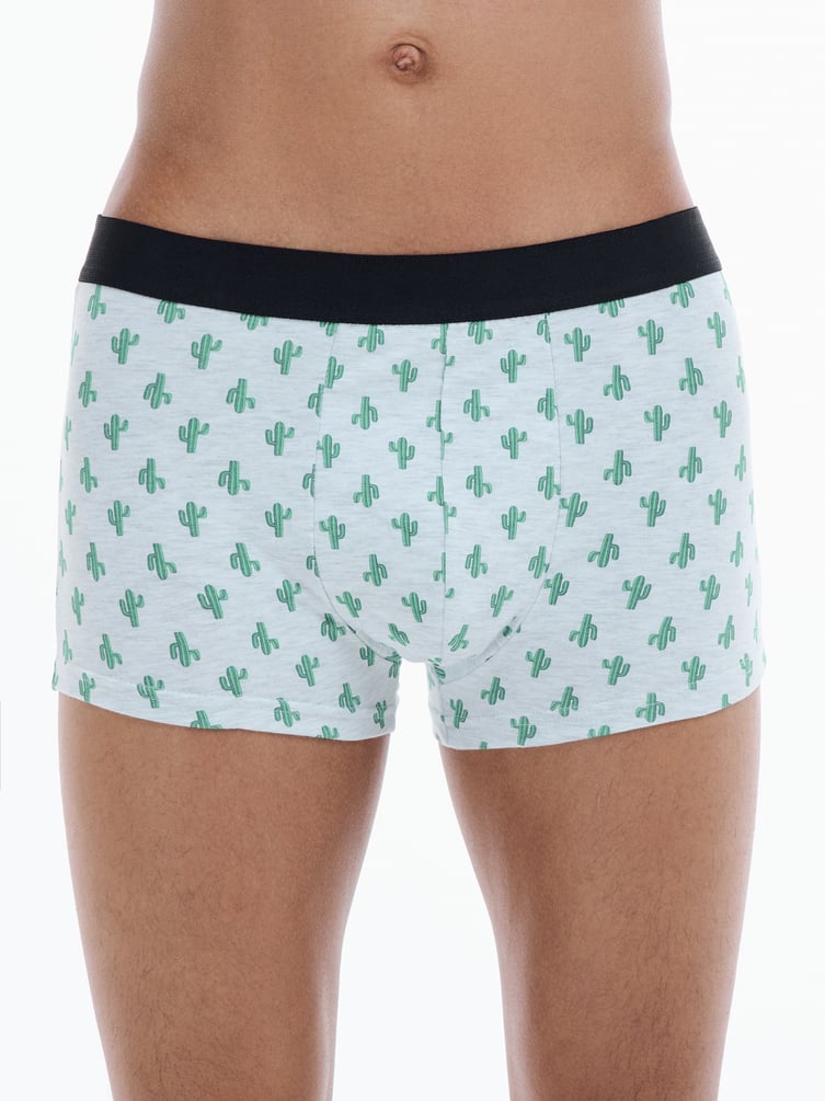 В комплекте 2 штуки: чёрные и серые, украшенные оригинальным рисунком с перчиком и кактусом. Трусы изготовлены из высококачественного материала — 95% хлопка и 5% эластана, что обеспечивает комфорт и долговечность. Благодаря широкой резинке они отлично сидят на теле, не сдавливая и не вызывая дискомфорта.