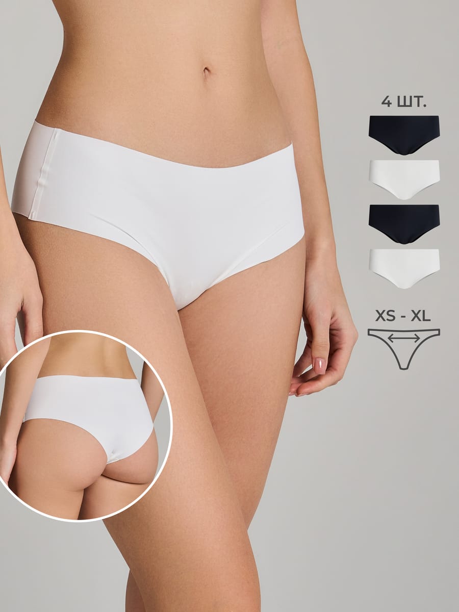 Женские трусы‑шорты от бренда ТВОЕ — это воплощение идеального баланса между комфортом, функциональностью и стильным внешним видом. Комплект из четырёх моделей в классической цветовой гамме — белоснежной и угольно‑чёрной — станет надёжной основой повседневного гардероба. Бесшовная технология исполнения обеспечивает абсолютную незаметность под одеждой: бельё мягко облегает тело, не создаёт дискомфорта и не оставляет следов даже под самыми облегающими нарядами.