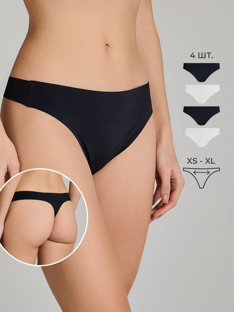 Трусы-стринги - 4 шт. бесшовные