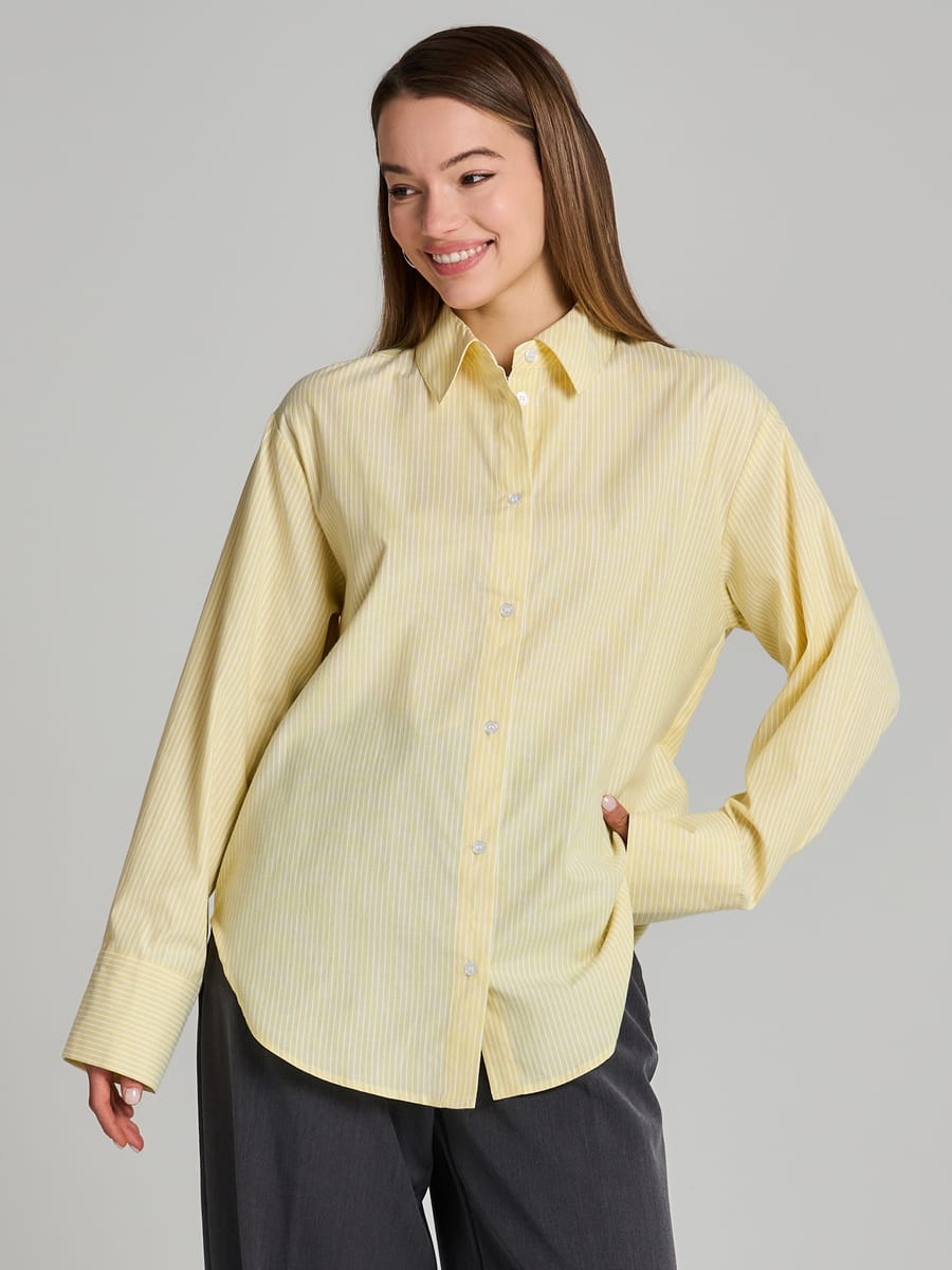 Стильная и комфортная женская рубашка от российского бренда ТВОЕ станет незаменимой частью вашего гардероба, независимо от того, вы школьница, студентка университета или работающая женщина. Удлиненный крой белой полосатой рубашки с жёлтой полоской идеально подходит для любой фигуры, включая беременные женщины, а также доступен в больших размерах. Верхняя одежда изготовлена из комфортной смеси полиэстера и хлопка, что делает ее идеальной для весеннего и летнего сезона.