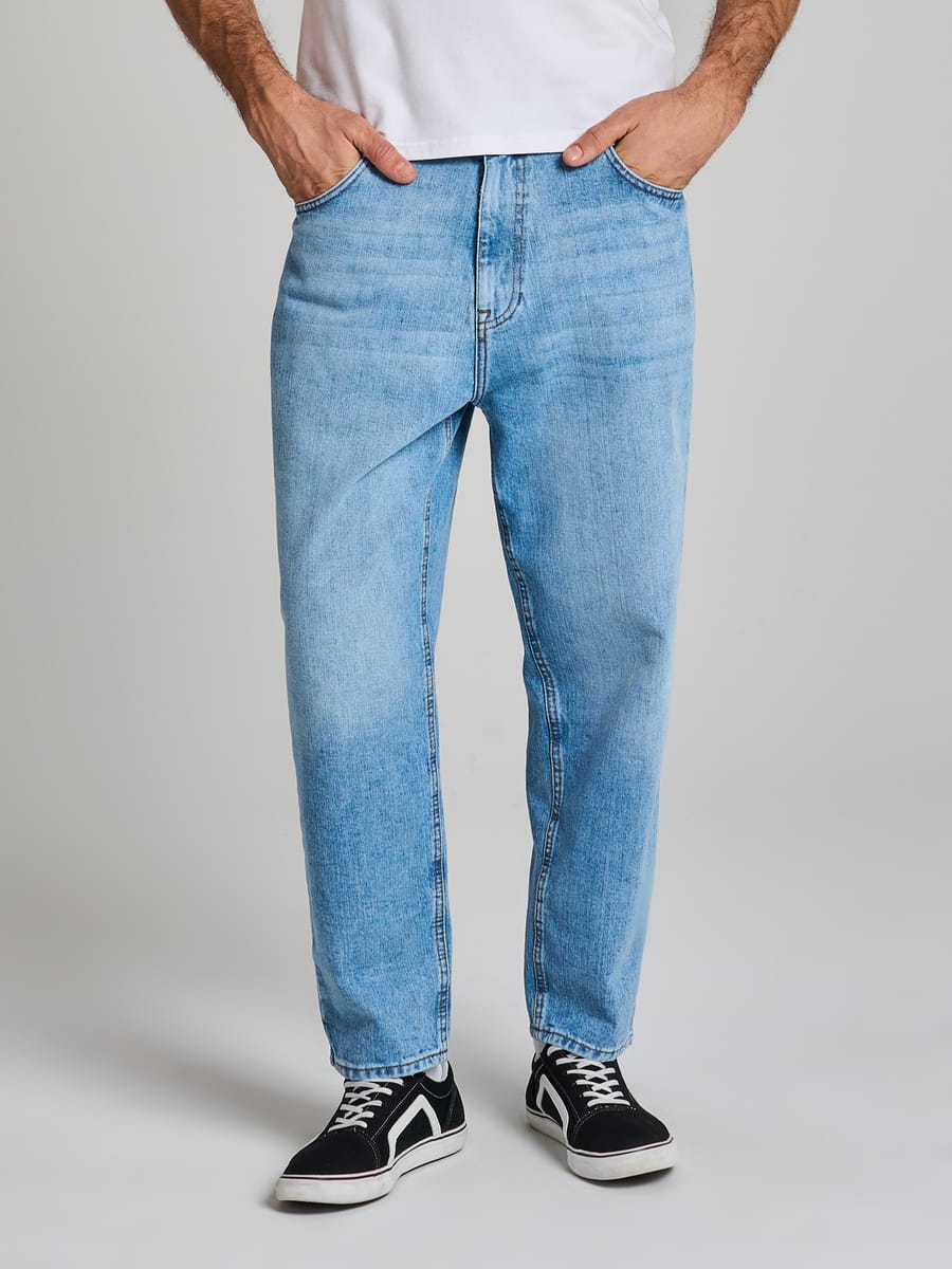 Безупречное качество воплощено в новой модели джинсов из плотного 100% хлопка. Классический голубой цвет и современный дизайн делают эту модель незаменимой в гардеробе каждого стильного мужчины. Особенности кроя включают зауженные штанины и укороченную длину, что создает модный силуэт в духе трендов 2025 года. Низкая посадка обеспечивает комфорт и свободу движений. Практичные детали представлены продуманной системой карманов: прорезные спереди и накладные сзади добавляют функциональности и характерного винтажного шарма. Надежная застежка на молнию и пуговицы гарантирует безопасность при носке.