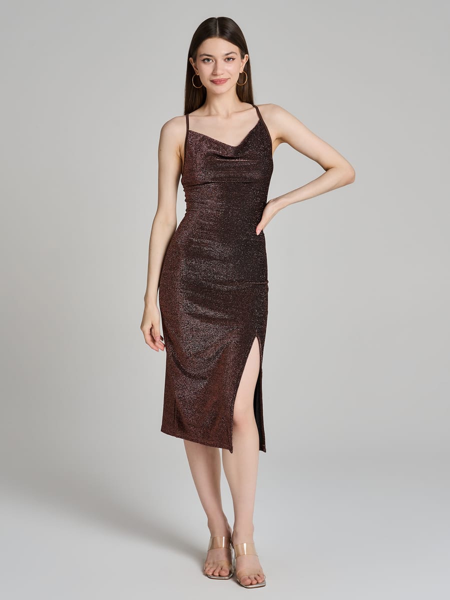 Изысканное бежевое платье от бренда ТВОЕ — воплощение современной элегантности и утонченного стиля 2025 года. Роскошное изделие с добавлением люрекса создает завораживающий эффект благородного блеска, который притягивает восхищенные взгляды. Модель поражает своей продуманной конструкцией: изящные регулируемые бретели на спине позволяют идеально настроить посадку, а открытая спина добавляет образу соблазнительной изюминки. Элегантный разрез по бедру придает сарафану особую женственность и грацию.