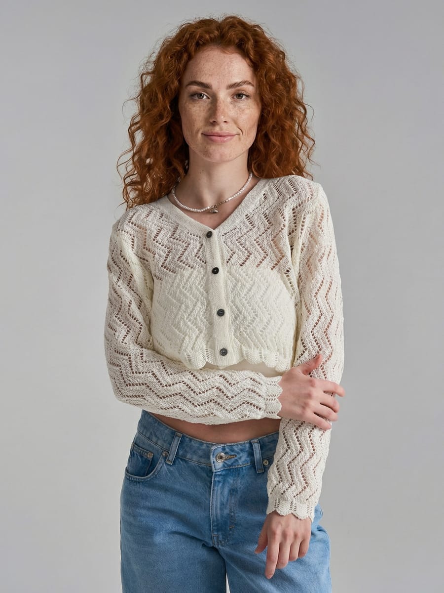 Женский кардиган от бренда ТВОЕ — это изящное сочетание классики и современных трендов, которое станет универсальным дополнением к любому гардеробу. Укороченный силуэт подчёркивает талию и придаёт образу лёгкую динамику, а прямой крой обеспечивает комфортную посадку по фигуре, не сковывая движений. Особенность модели — тонкое вязаное полотно с ажурным узором, которое придаёт изделию изысканный, воздушный вид. Несмотря на декоративную фактуру, кофта сохраняет практичность: застёжка на пуговицах делает его удобным в повседневной носке, а качественный трикотаж гарантирует приятные тактильные ощущения и хорошую воздухопроницаемость.