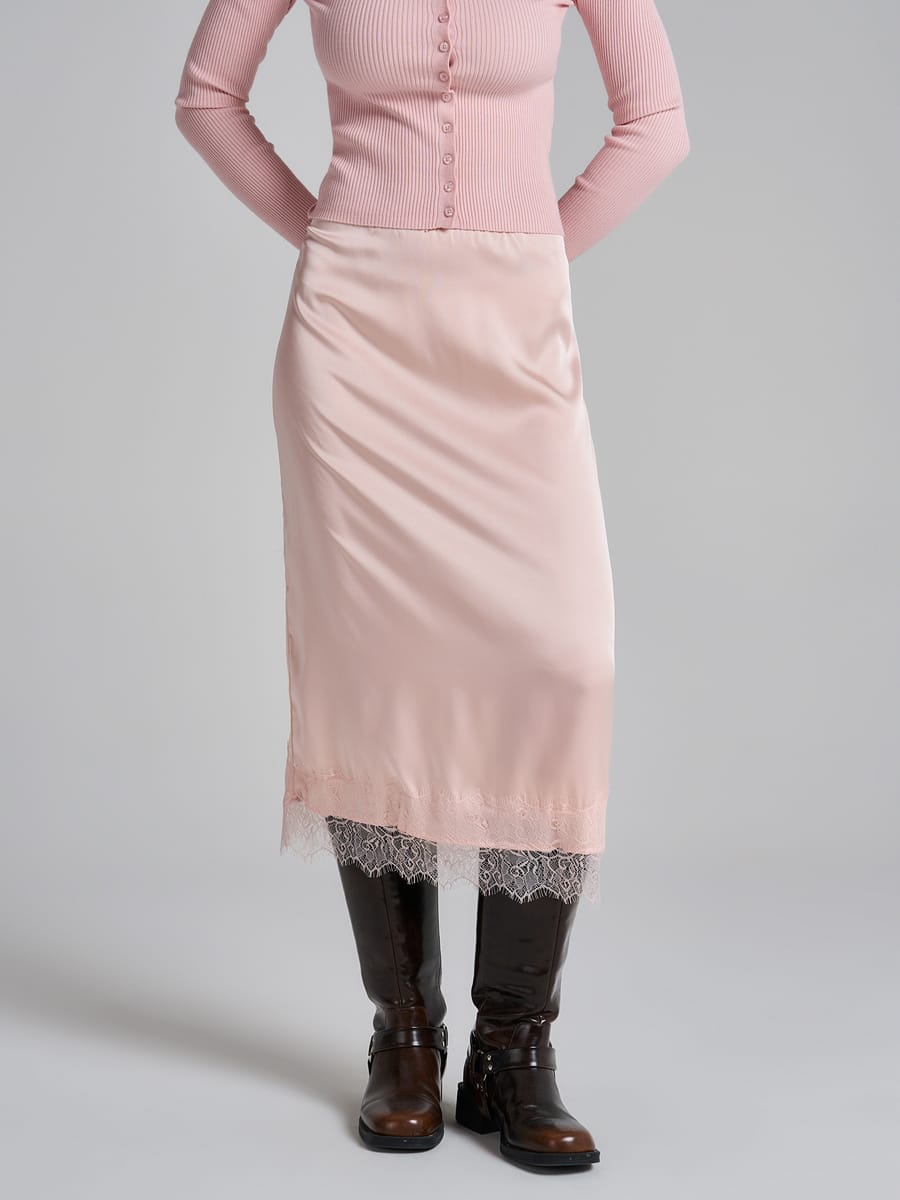 Женская юбка от бренда ТВОЕ — это изысканное сочетание деловой строгости и деликатной женственности, способное стать основой как офисного гардероба, так и вечернего образа. Модель выполнена в длине миди — чуть ниже колена, что придаёт ей благородную сдержанность и универсальность. Особый шарм юбке придаёт широкое кружево по нижнему краю. Этот утончённый акцент смягчает строгий силуэт, привносит нотку романтичности и делает образ более выразительным. Атласный блеск основной ткани в сочетании с ажурным декором создаёт изысканный контраст, позволяющий легко трансформировать стиль: от деловой классики до вечерней элегантности.