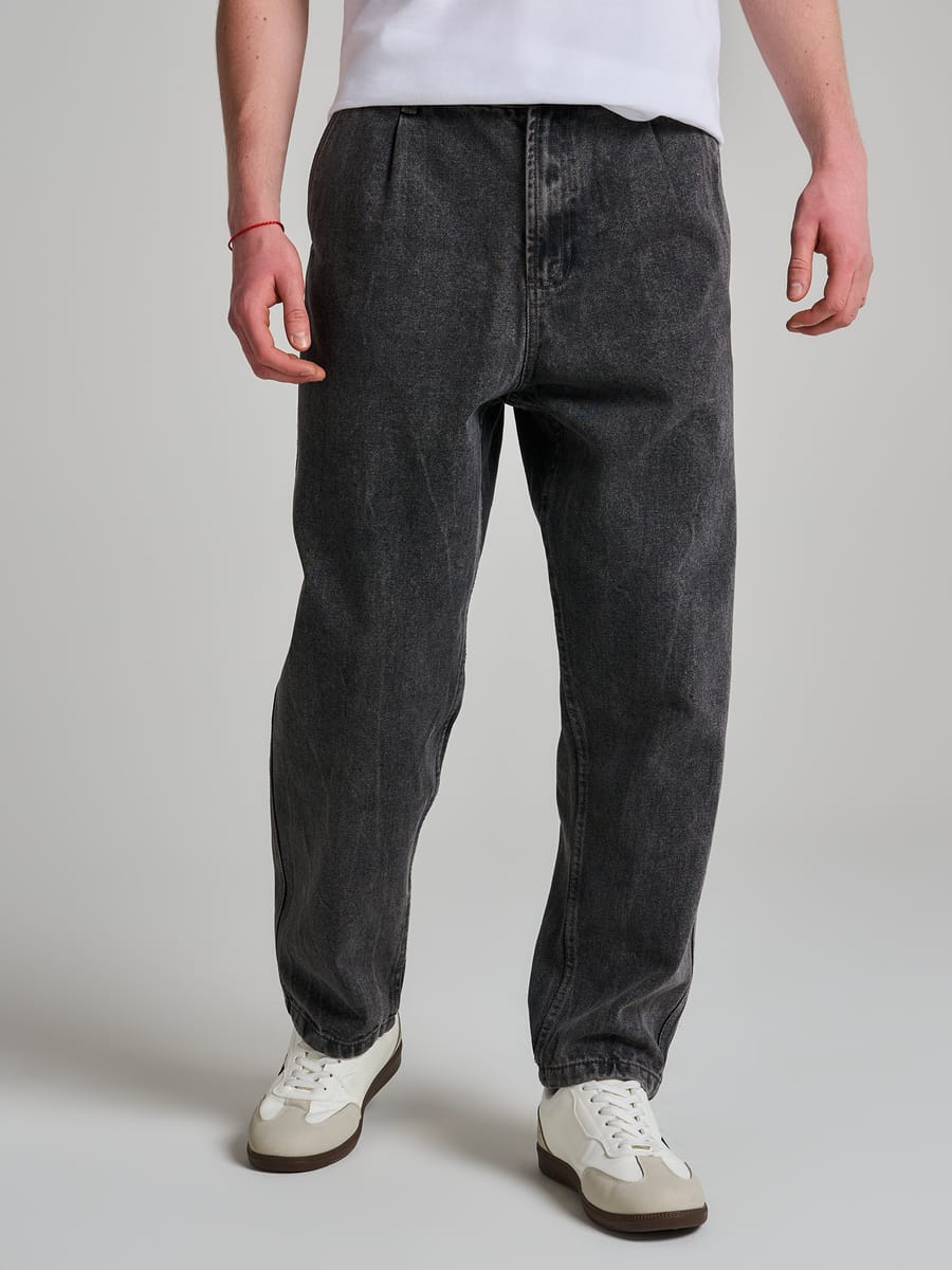 Широкие зауженные мужские джинсы бананы ТВОЕ будут незаменимы в любом гардеробе. Они сшиты из легкого 100% хлопка, позволяют коже дышать и большемерят. Их можно носить с тонкой футболкой, оверсайз свитером, теплым джемпером или под пиджак в зависимости от повода. Они имеют среднюю посадку, классическую молнию и пуговицу в качестве застежки, накладные и прорезные карманы